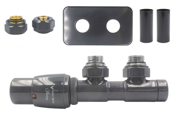 Zawór termostatyczny 50mm TWINS grafit błyszczący lewy All in One