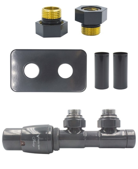 Zawór termostatyczny 50mm TWINS grafit błyszczący lewy GZ1/2 All in One